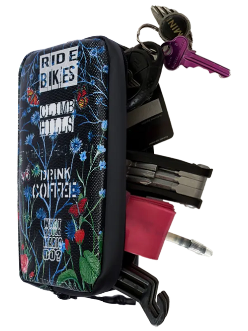 L'étui est doté d'un séparateur souple pour séparer vos cartes de votre smartphone, ainsi que d'une poche intérieure zippée supplémentaire pour vos petits objets de valeur comme vos clés et vos pièces de monnaie. Vous pouvez également l'utiliser pour ranger votre kit de changement de pneu crevé, comprenant une chambre à air de rechange, des démonte-pneus, une bouteille de gaz et même un outil multifonctions de taille moyenne.