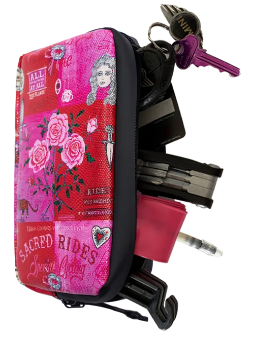 L'étui est doté d'un séparateur souple pour séparer vos cartes de votre smartphone, ainsi que d'une poche intérieure zippée supplémentaire pour vos petits objets de valeur comme vos clés et vos pièces de monnaie. Vous pouvez également l'utiliser pour ranger votre kit de changement de pneu crevé, comprenant une chambre à air de rechange, des démonte-pneus, une bouteille de gaz et même un outil multifonctions de taille moyenne.